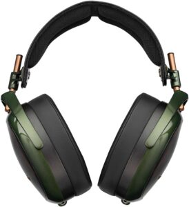 The ear cup covers are made from Macassar ebony hardwood, which has natural grain patterns that ensure no two Stradas will look the same. The interplay between the darker wood and the metallic green frame is warm without being too retro; their combined aesthetic seems more like a luxury object than audio equipment.